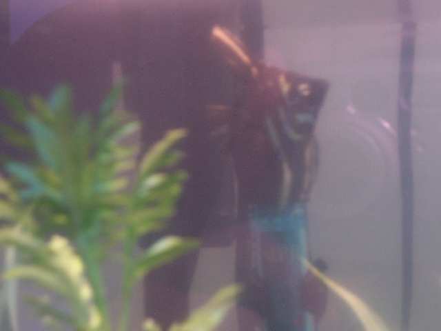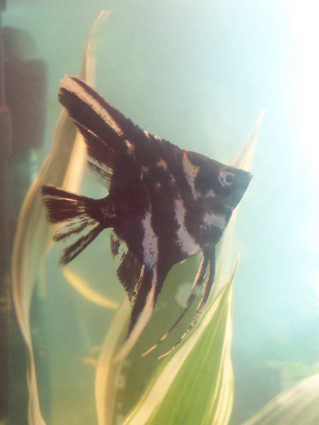 When I woke up this morning his ventral fin seemed even shorter and rounder. It looks a little frayed at the end, so I am treating the tank with anti-fungal/fin rot stuff. It's a veil angle, but I have noticed that there are species that don't have pointed fins, could it be a cross breed? I had a platy that was nipping at the angle, but the platy died about a week ago, so I know that's not an issue anymore. Thanks for your help.