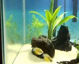 after much thought i decided to add a honey gourami today.i brought it from a very good lfs.the only thing is that he/she is not orange.he/she is silvery with a dark stripe going through it and orange edges on the "bottom" and Dorsal fins .its very young but will it go orange??