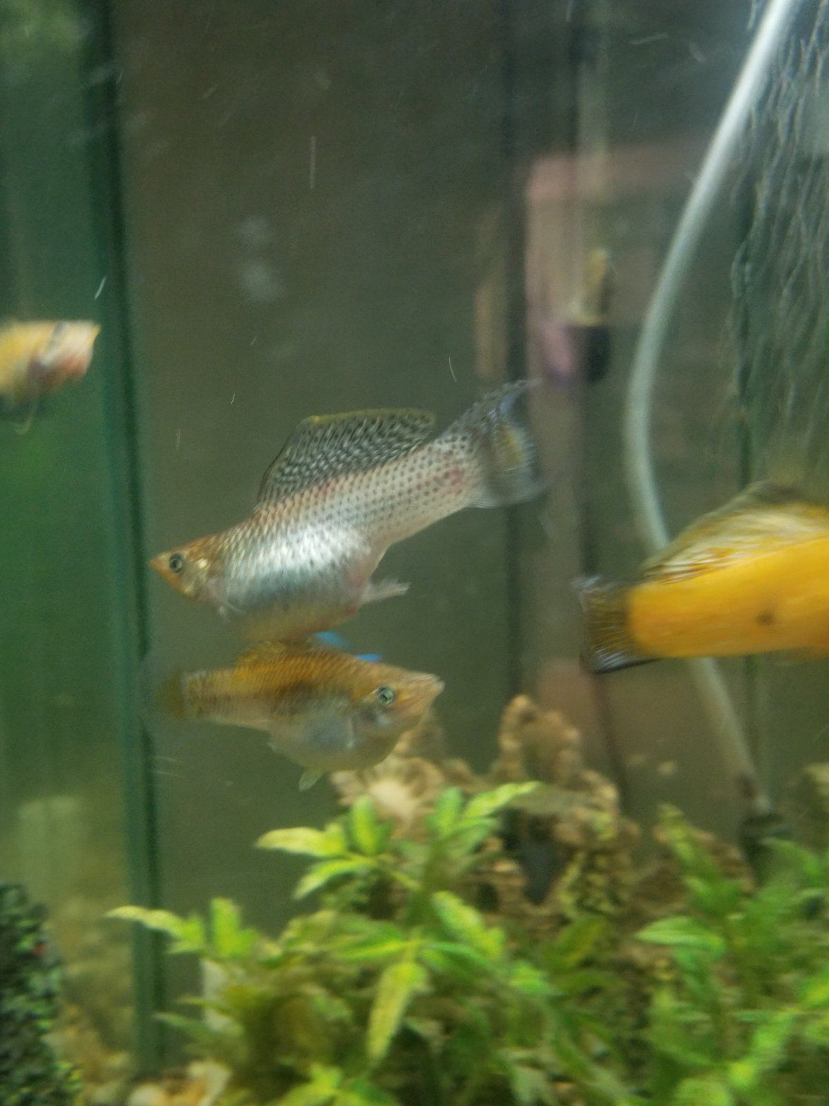 In the wild, female livebearers hang out in large groups consisting of between 20 & 50 (but sometimes up to 100 or more) females. These groups have a pecking order with the biggest most dominant female ruling the group and she has a group of girlfriends who back her up. All the other females live in the group but are lower down the pecking order.