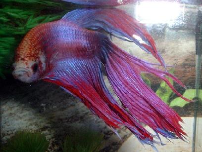 Oh, and the first pic is with flash on and the second have flash off. The second pic was the day I first got him and in the third pic it was only a month ago... His color changed a lot, now he has purple on the base of his tail in kind of a buttefly pattern but not as noticable. I've had him almost 4 months now.