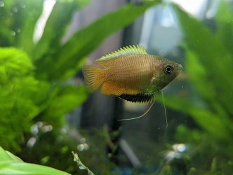 Hi! I have a pair of honey gouramis that were doing something weird yesterday. Is this mating behaviour? Or are they fighting? They're male and female wild types, the male has a big bubble nest in the water lettuce at the top of the tank. Am I going to be a grandpa?