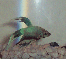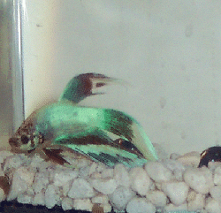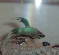 I picked up a new betta yesterday - I was at the LFS and I was just looking at the bettas and spotted this one - I absolutely HAD to have him! He is opaque but has some strange markings on his fins. I named him Jubilee because I thought it suited him.. lol