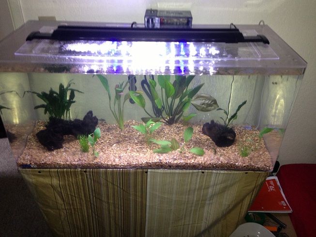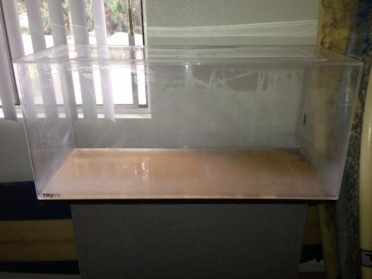 Paid 45 bucks for a TRUVU acrylic tank. Saw the tank retailed for 300+ when new for the same demensions. Holds water fine. Was really dirty when i picked it up but now after cleaning it doesn't look half bad. Don't know what i'm going to do with it yet. The length is 36inches width is a hair over 20 and height is 19inches holds about 46.3 gals they sell them as a 50gal. Came with a piece of a black wood cut to fit the bottom of the tank to distribute weight and a metal bookshelf to sit it on. Might swap the bookshelf out for a wood cabinet. Always happy to save a decent tank from the dump will add pictures later. If anyone has this brand of tank setup please link me to your tank I want to see ideas for them