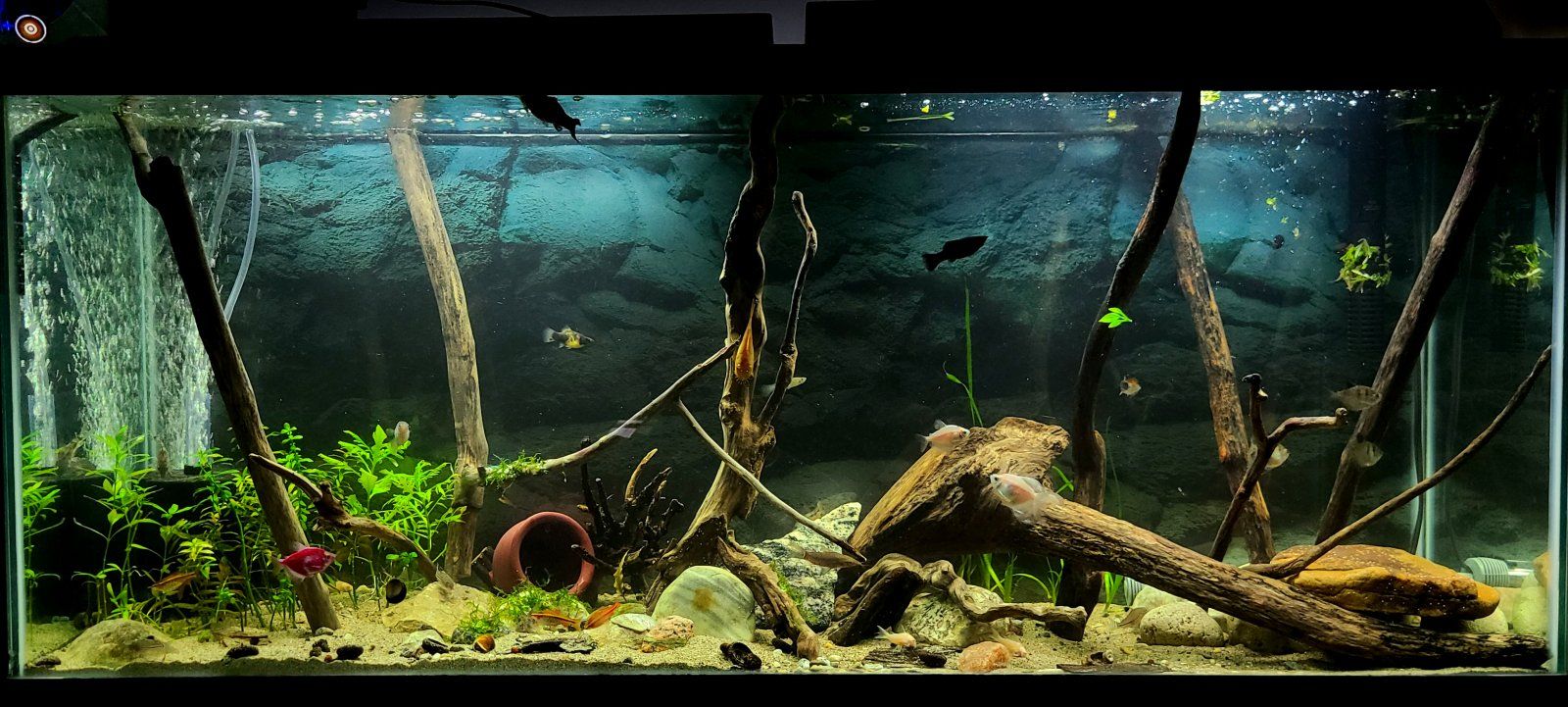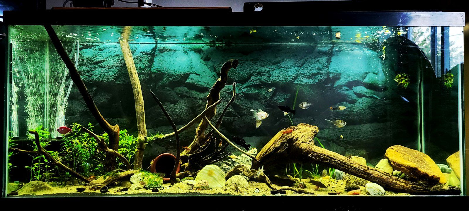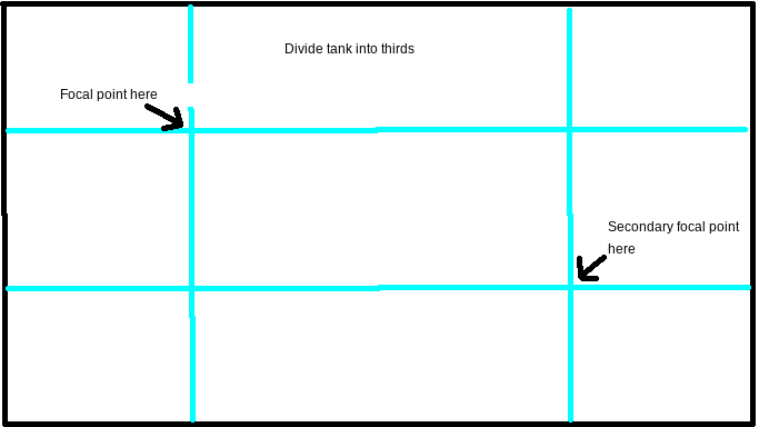 Put a focal point about 1/3 of the way in from the side of the tank around 2/3 the height. For a bigger tank, I like a primary focal point on the left, and a secondary focal point on the right, 1/3 the height of the tank.