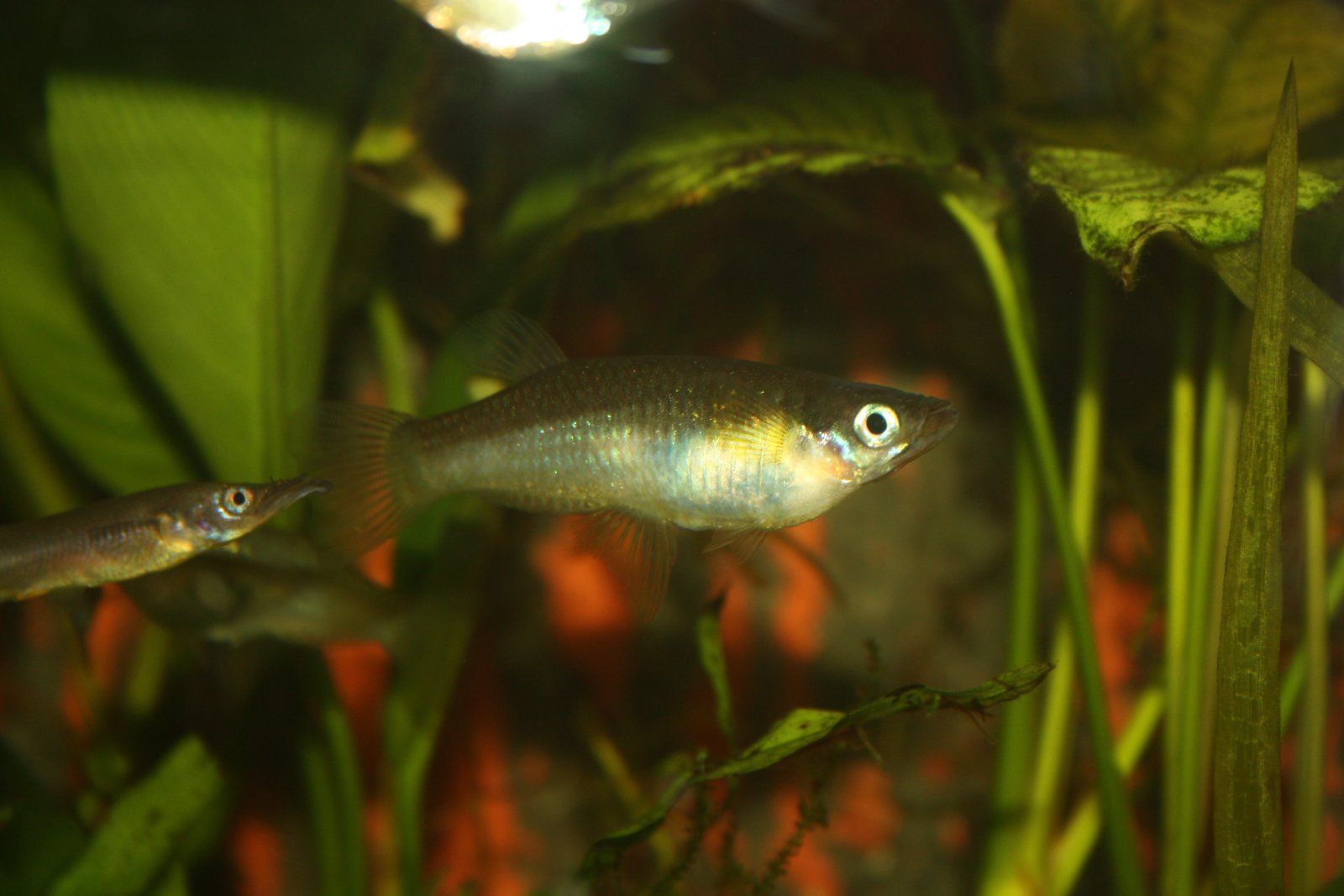 Overhere some pics of my knife livebearers (Alfaro cultratus). This livebearer species origins from Nicaragua, Panama and Costa Rica where it inhabits shallow waters like rivers (mainly shoreline), ditches and creeks with mainly a low till moderate water flow. But sometimes they also occur in fast flowing waters.