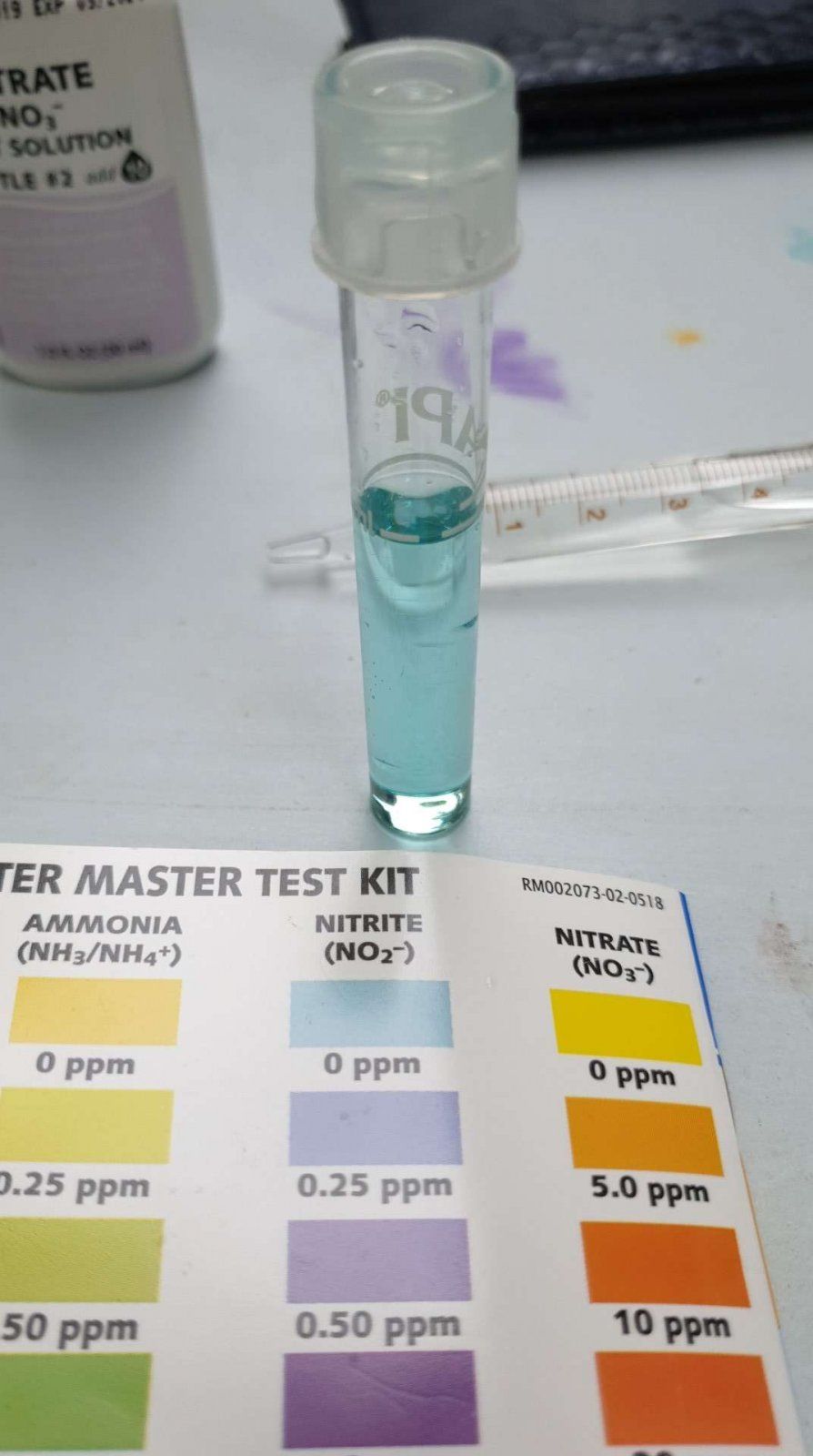 Yesterday I went to my lfs and they had a buy 2 fish free 1 sale, so I went ahead, got 3 rummynose tetras and a piece of driftwood. They turned pale during the trip back, and I took a bit of time to put the piece of driftwood in there and a LOT of hydrilla, also a Catappa leaf. Their faces turned red today, and when I tested, these are my results:
