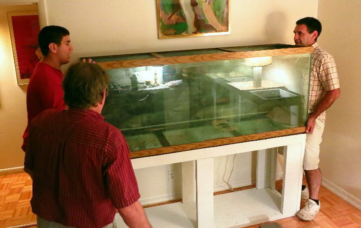 Here is a pic of my 150 gal being placed on the stand I built. If you look closely where the tank sits on the stand you will notice a black line between them, it is the weather stripping.