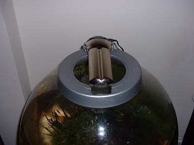 this what the top of the biorb looks like without the lid, i bought an Arcpod 9W and it fit perfect! then came the hard bit - with the new light sitting on the top of the tank without the original lid it looked a bit unfinished! so after a bit of carefull doctoring with a junior hacksaw blade this is what i came up with. i know its not proffesional looking but the lighting in the tank is now 20 times better than before.