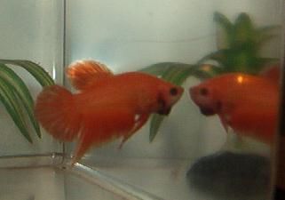 I wonder how they'd react if I put them next to each other The son has been really sulky lately BUT he's been alone with sister all this time, so last night I moved him and her beside some other bettas and this was the reaction I got out of him. Guess he just wanted to see another male to be true to his fighting senses