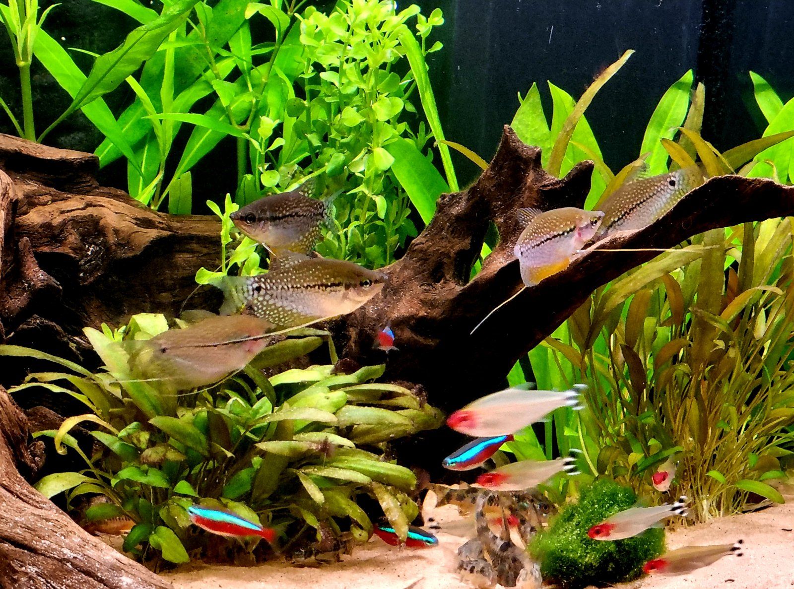 your aquarium looks fantastic! and those gouramis look to be really happy, hope they form a good bond with you and give you many years of happiness and enjoymentView attachment 145218View attachment 145219View attachment 145221View attachment 145222View attachment 145223View attachment 145224