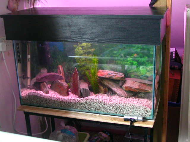 My lobster tank has lots of slate and black cobbles to make the caves, it's planted with cuttings from my 3ft tank and have 2 blue lobters (cherax quads) and 5 scissor tails.