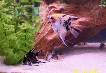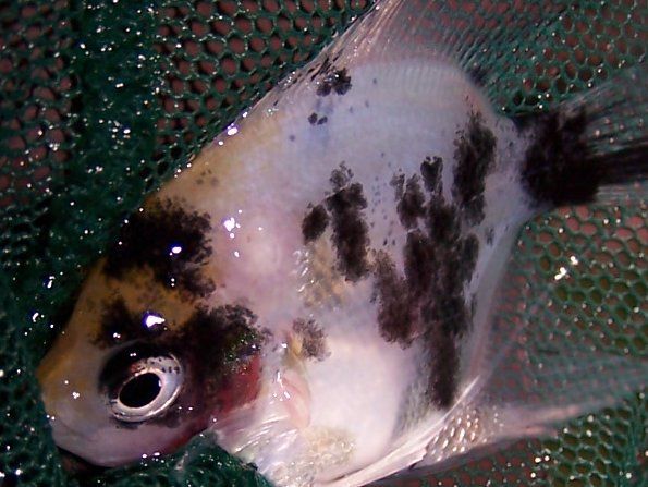 Edited to add - I took the angel back to the lfs (we were there 2X yesterday) and they said it looked like an inflamed fish bite with maybe a little fungus starting to set in. So, a healthy dose of melafix should hopefully cure it right up. I also added melafix to the 10g to help the male ram's fins.