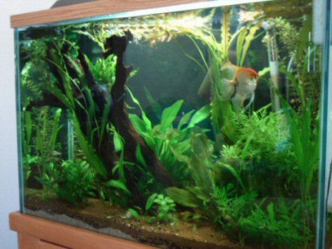 Filtration is accomplished by an Eheim Ecco 2236 and a HOT Magnum with sponge pre-filter. It has a Visa-therm 150 watt heater, a Hagen Nutrfin CO2 system, and a faux rock ledge for my Red Claw crabs.