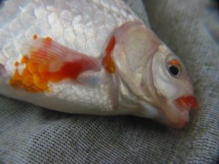 I later drained the pond for cleaning and separated out three goldfish which looked odd.