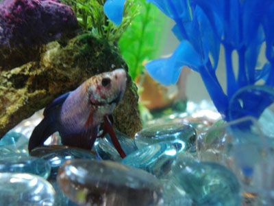 Dodger is my new guy as of a couple of days ago. He's quite possibly the most curious and fastest adapting betta i have seen. I cannot put anything in the tank without having to "shoo" him away with my hand underwater to ward him off. He's not quite so "spazzy" when i approach the tank.... but i fear i have another begger on my hands. He ate, flared, and made a bubble nest the first day in his tank...... new behavior for me (although i stood in petsmart for nearly 2 hours picking out the "best" one).