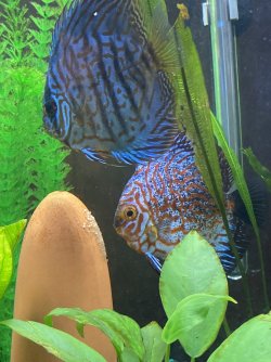 It’s funny because I came home today and look what I sawI have a 50 gallon tank with 4 discus in the tank. My levels are almost perfect. I have no ammonia or nitrite, low levels of nitrate (b/c there are plants in the tank), 0 KH, and 6.8 ph. However, my general hardness is super high. I have tried everything. I have peat moss media in my filter, and moss balls all over my tank. I treat my water for water changes with seachem prime. I live on long island so the water in my tap is medium hard, I haven't tested it but online it says anywhere between 17-50ppm for total hardness. I know that i should get a RO system, but they are super expensive and i would need one that connects to the faucet. If anyone have any suggest for a RO system like that please let me know. Anyway, the real reason i want my GH to be lower is because my discus are breeding. It is there first time breeding, and they have been laying eggs for about 3 months but every time they lay eggs they eat them 3 days later. It could be because they are new to breeding, but i read somewhere that they need really low GH to hatch. I am really looking for some ideas on how to lower my GH! Please let me know what you guys do. Thanks