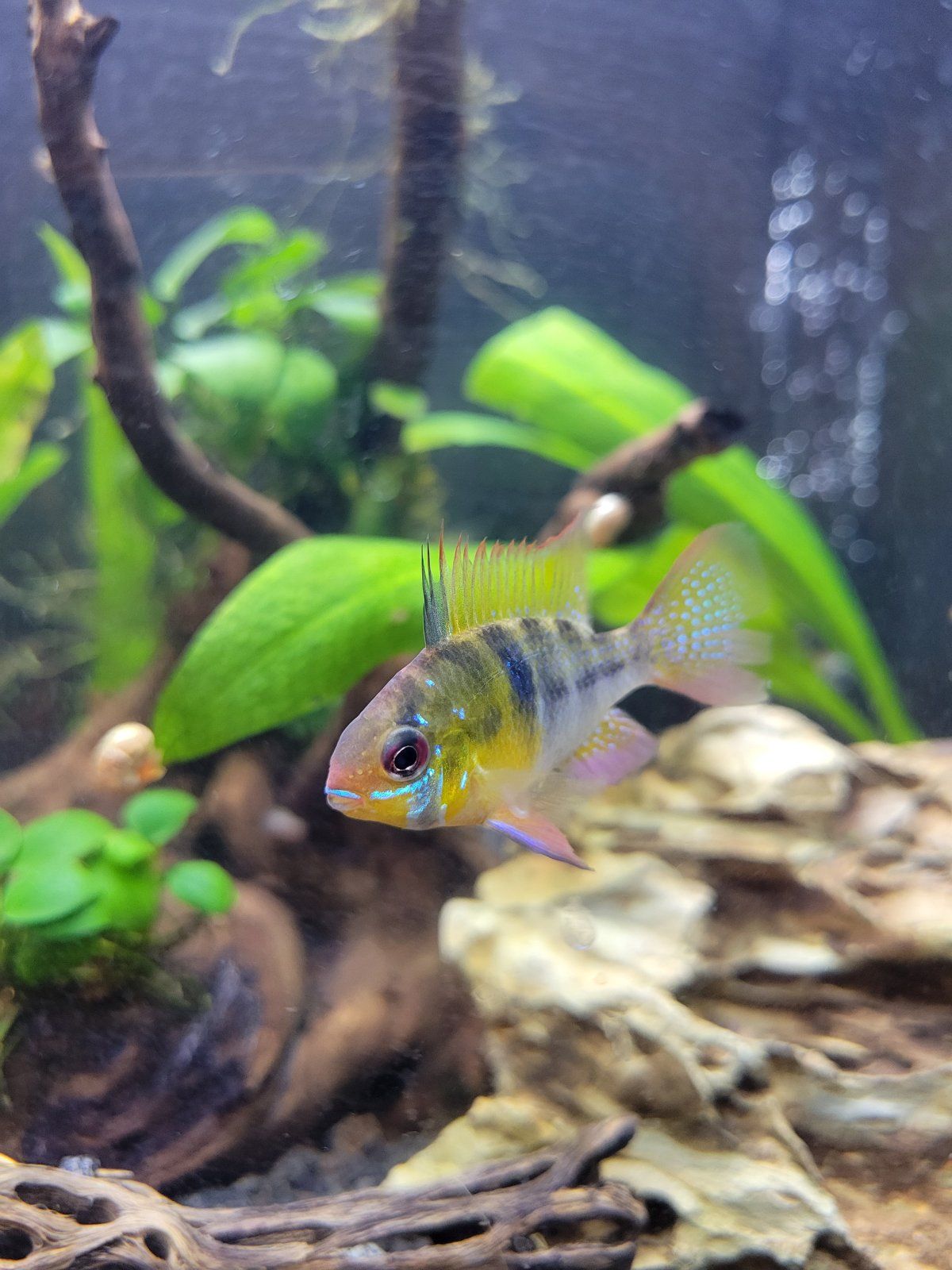 I would love to know if this ram is male or female. I have asked fish groups, several people tell me male because of the no pink belly.