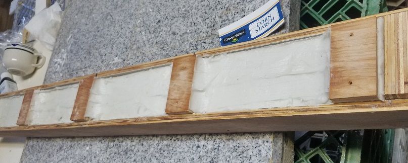 I add some small blocks of wood for support, I want to bend the mold to make curved rocks. So here how it came out: