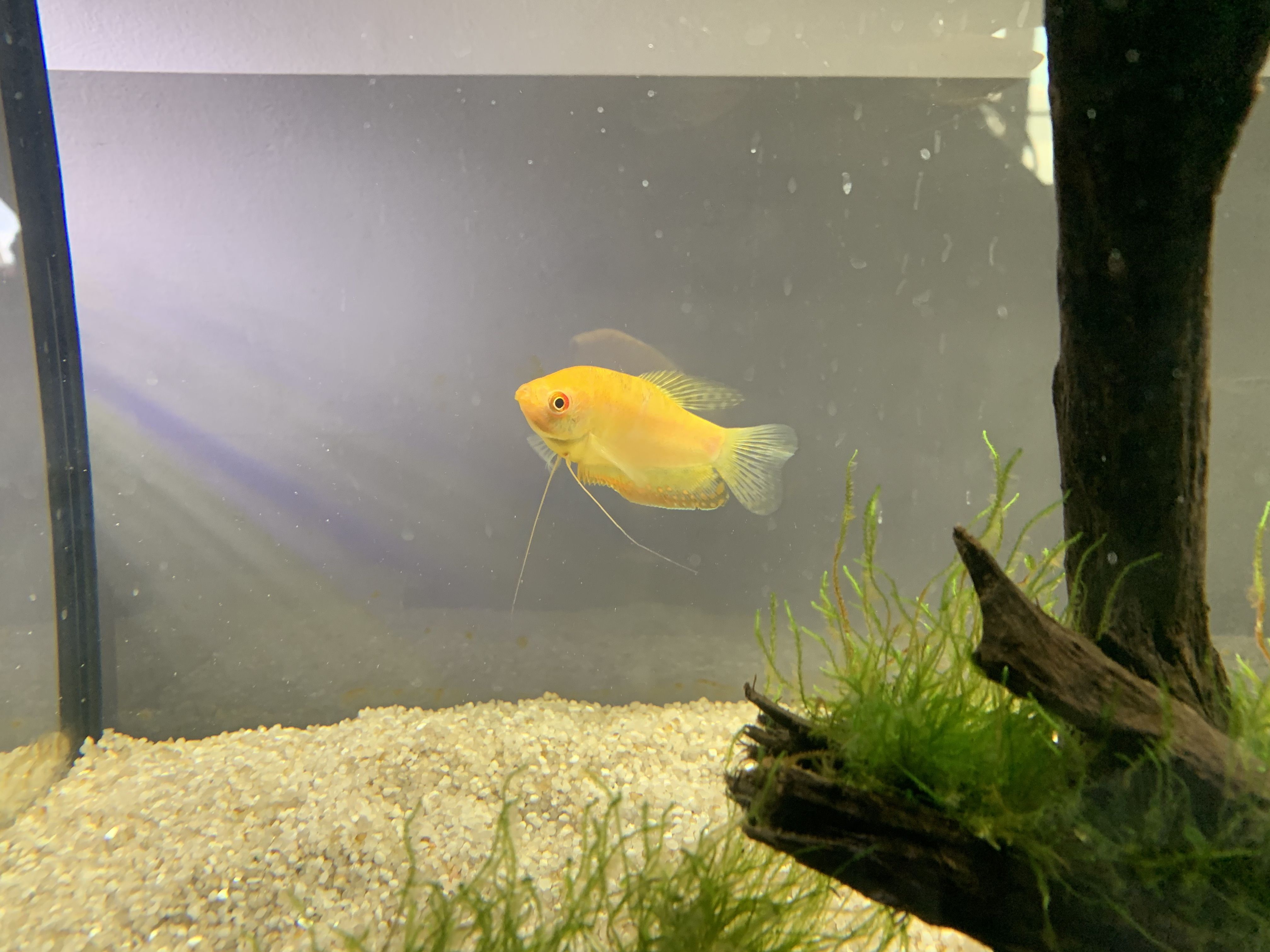 Colin_T Fish Guru Joined Jan 26, 2008 Messages 41,873 Reaction score 26,321 Location Perth, WA May 11, 2020 #17 the fish on the left is male, the fish on the right is female. male gold gouramis have a longer pointed dorsal (top) fin, the females have a shorter rounded dorsal fin.