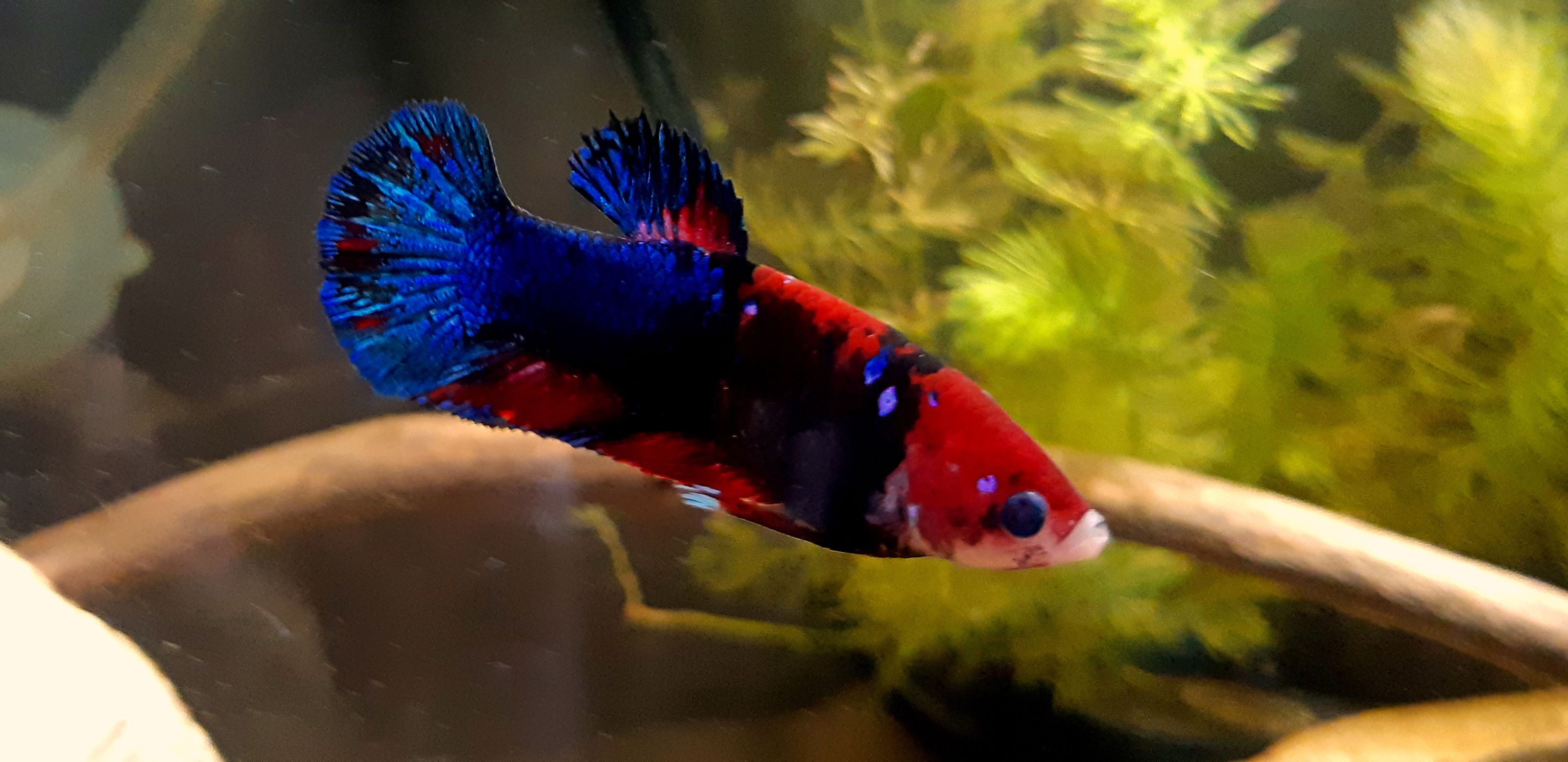 I always seem to get the best pics when my tank is spotty! So aggravating!Really nice betta! I’ve always wanted to get a koi Plakat betta like that. It has just never been in my budget.