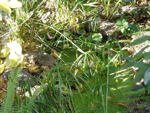 our pond had gone abosolutley bannas. u cant see the water anymore coz of the stuff growing over the top (duckweed) we also got alot of Papyrus and water Hycianths and the pond pump to the waterfall has stopped working. no time. no money. this is the end result haha