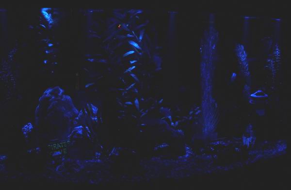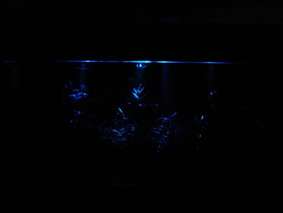 Hi...some great posts here on moonlights. I just wanted to post a clearer picture of my tank at night. I'm not sure how to upload here so I'm linking it from the Members section. As you can see, the luminescence is amazing and I'm blown away to see what happens after dark. It seems much less bright than a cold cathode. I have it linked to a timer so when the strip light goes out, the LEDs come on. I highly recommend it. The reason I built mine is because I didn't know anything about tank hoods when I bought my 46 gallon bow.The hood is all plastic with a central strip of glass that only fits their strip light. There was no way to upgrade my lighting without having to buy a whole new hood and I didn't like the moonlights that stick on the side of the tank. Not only is it amazing to see who comes out at night, but, talk about the beautiful light blue glow. Anyway, if anyone needs help, they can PM me....the only skill really needed is soldering. I finished this project in about 3 hours. I added a dimmer on it, but, I don't think you really need it. SH