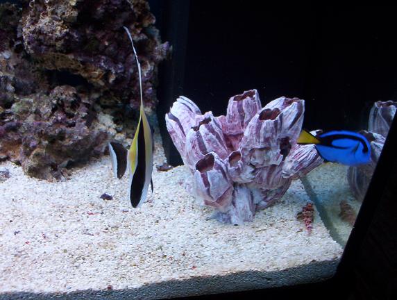 I just bought these two very attractive fishes. First pictures are of the Morish Idol and the 2 last are from the Regal Tang.