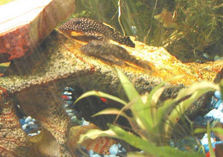 so do you think the one closest to the camera is a vampire pleco? I don't have an id for him. It is starting to get frustrating.......PereguineFalcon said:Gold nuggies are so awesome! The vampire pl*cos are beautiful also! Great pic! You should paint a sign that says Handicapped Parking in nontoxic paint on one of the rocks...!!!!