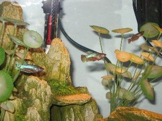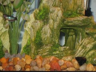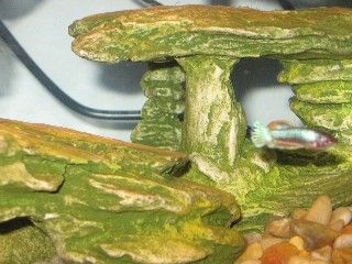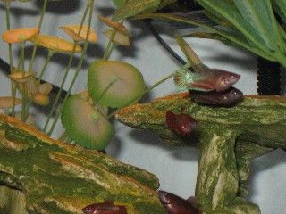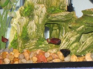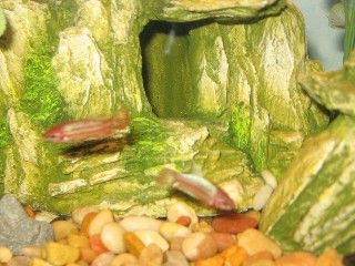 The caves look more brown than green in "real life". I'm still trying for a great photo but those little girls are too darn fast. I don't want to stress them by moving them into a smaller photo tank, just so I can take a clear photo though.