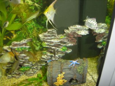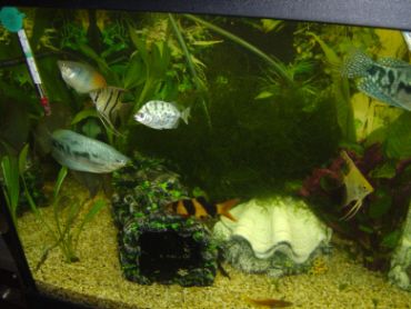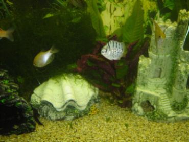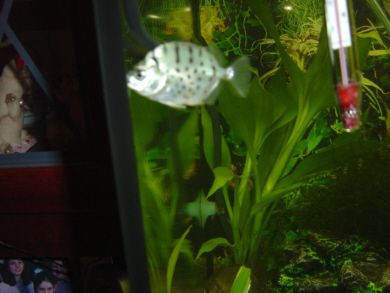 Wow, i love your gouramis coloration!! Wish mine had that type of coloration. Mine just has a single large black dot about midbody...lol...none of that fancy coloration yours got going on. Kewl fish!