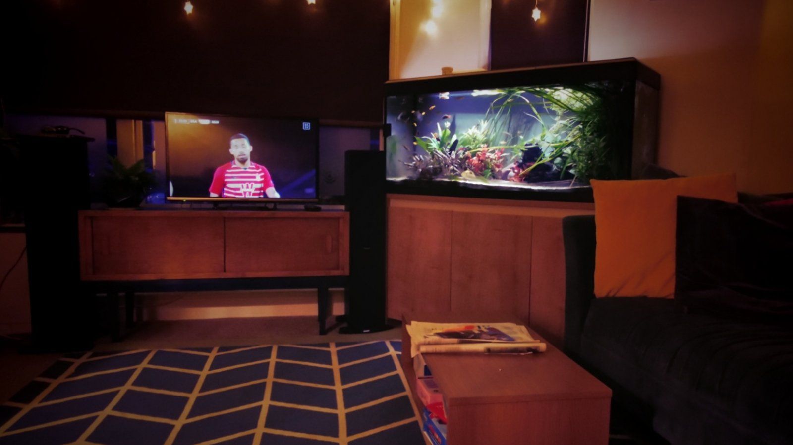 Thats a very good way of getting the tank away from the window and into the prime viewing slot....the old electrician trick