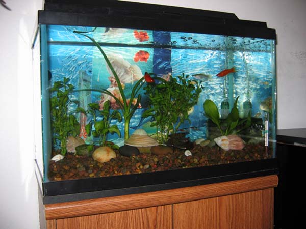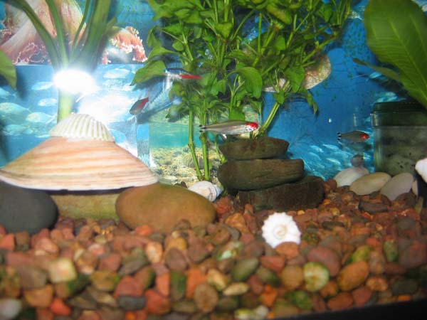 thanks. i wanted to buy a background for my tank but when i saw it was like 7 bucks i changed my mind, i'm kinda cheap, lol. so i took all my national geographic magazines and cut out anything to do with fish and put it all together in a collage, so there it is