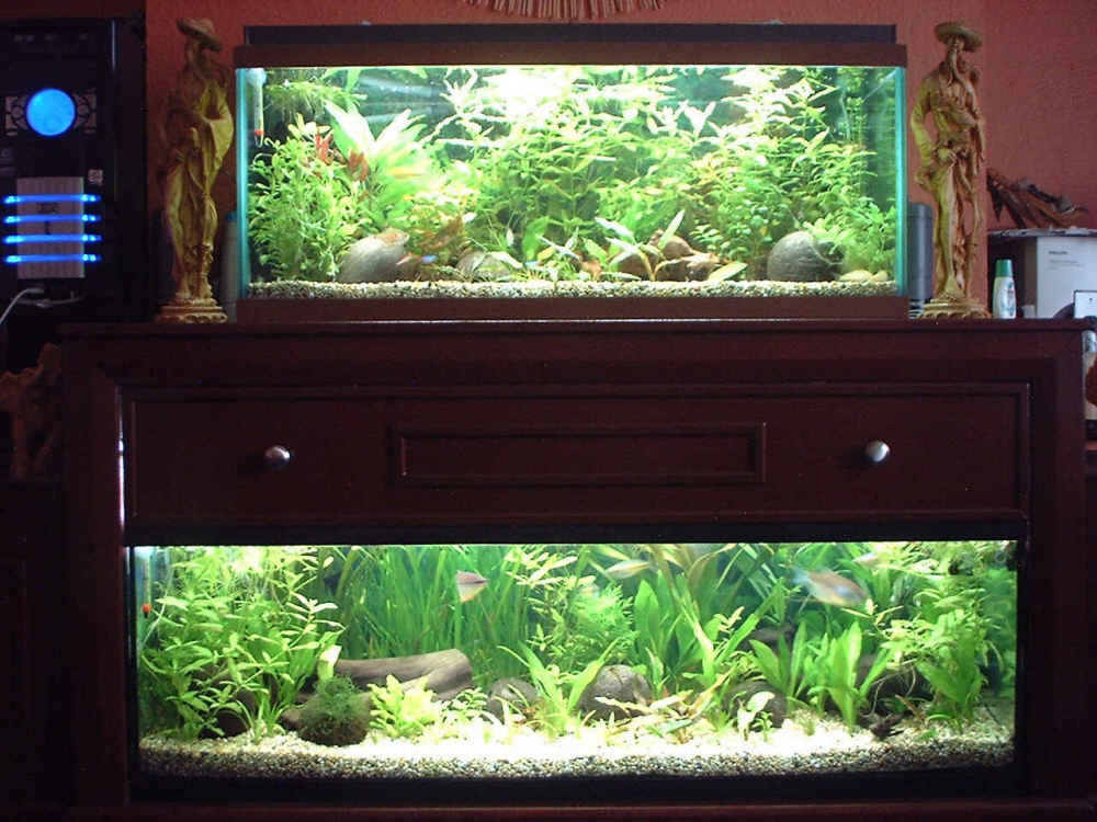 I built all this about a year and a half ago about 4 months ago a stripped the tanks down to start again after looking at the planted tank section so i chucked in a load of plants(allsorts)better lighting diy co2 and everything seems to be going ok(apart from my camera and im no photographer)