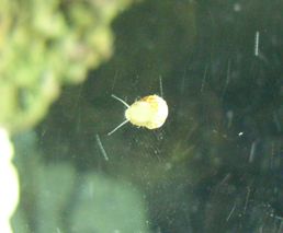 Okay, this is the last picture... for now at least. This was a little snail that was on the edge of the glass last night. This morning he was gone. RIP little snail.