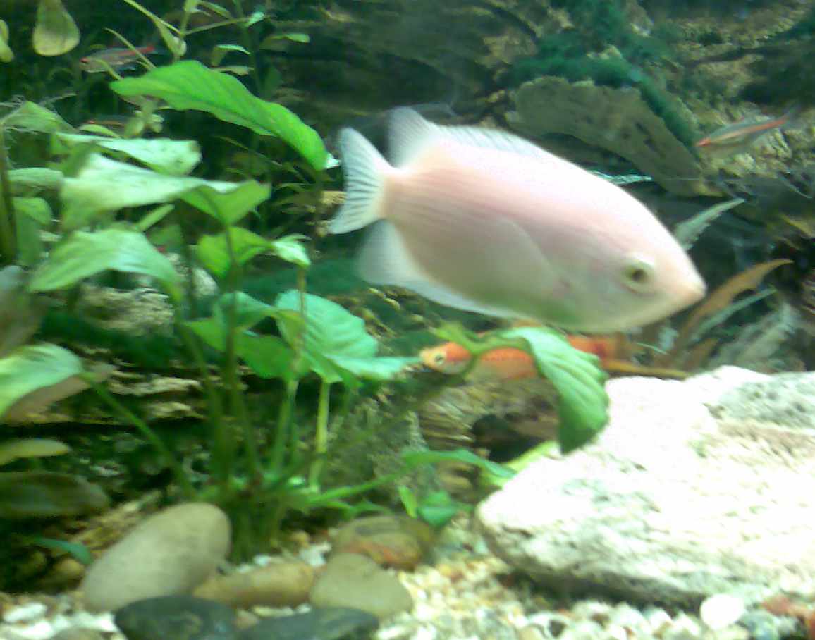 No the gourami is actually quite gentle and doesnt really bother anyone exept the outlet pipe for the external filter which he enjoy wrapping around until the water fires him to the other side of the tank! He only seems to do this at night, had me kind of worried at first but I honestly believe he is just amusing himself