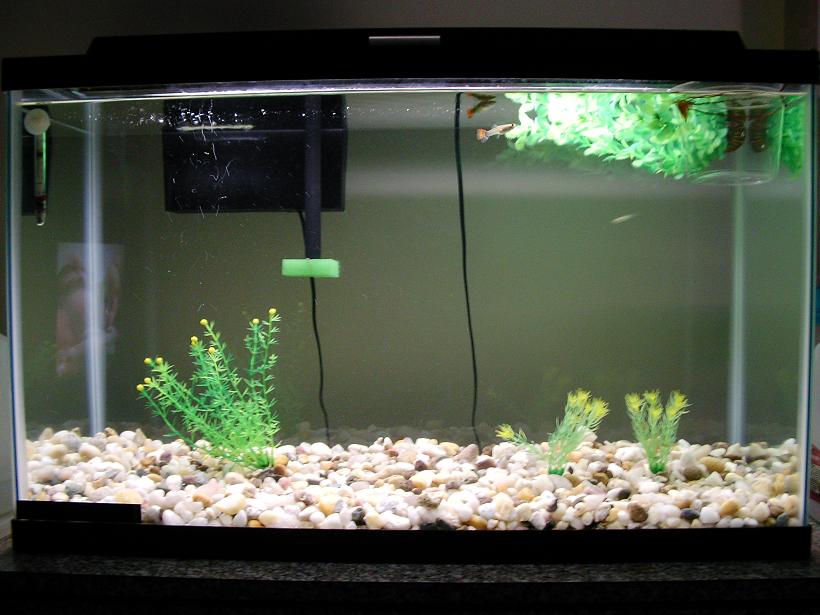 I still need to expand on it, and it's a 29 gallon, I'm sure. I'm just going to wait until the guppies give birth, so that they'll stock the tank themselves. I'm also looking to add java moss, and some water sprite.