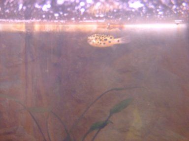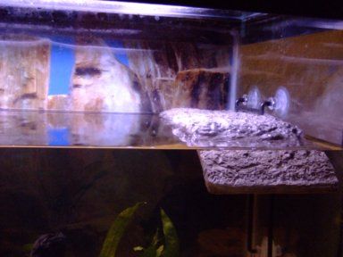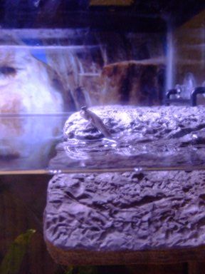 Her name is Barbie because she is kind of a ditz. She prefers to cling to the glass instead of using the two platforms I made. She is kind of growing on me, I will look into the aquarium and she'll come up to me all curious. (It's pretty cute)