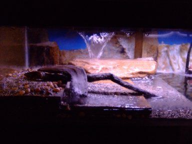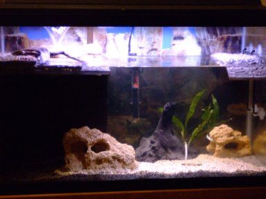 Hey guys so I got pics taken of my new tank, I have to admit I'm quite proud. I converted this tank from FW to Brackish once my albino tiger oscar got too big. I graduate in May when I will reward myself with a 70 gallon tank and that way the GSP and Mudskippers will have a long term home