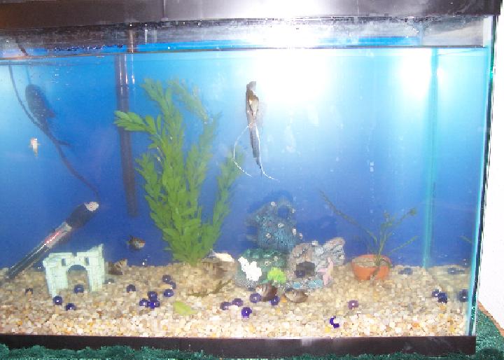 my tank my tetras (6) my angel my pleco and also can somebody tell me what kind of angel and pleco i have thx ~fishdawg~
