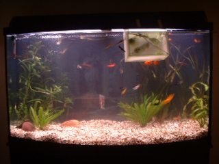 Here's a few updated pictures of my 46 gallon just after I spent an hour planting it. I still need to get some driftwood, rocks and more plants so the tank isn't completed yet. I'm sorry if the pictures aren't the best quality, but I took them after I stirred up the gravel so that's why the tank is so cloudy.