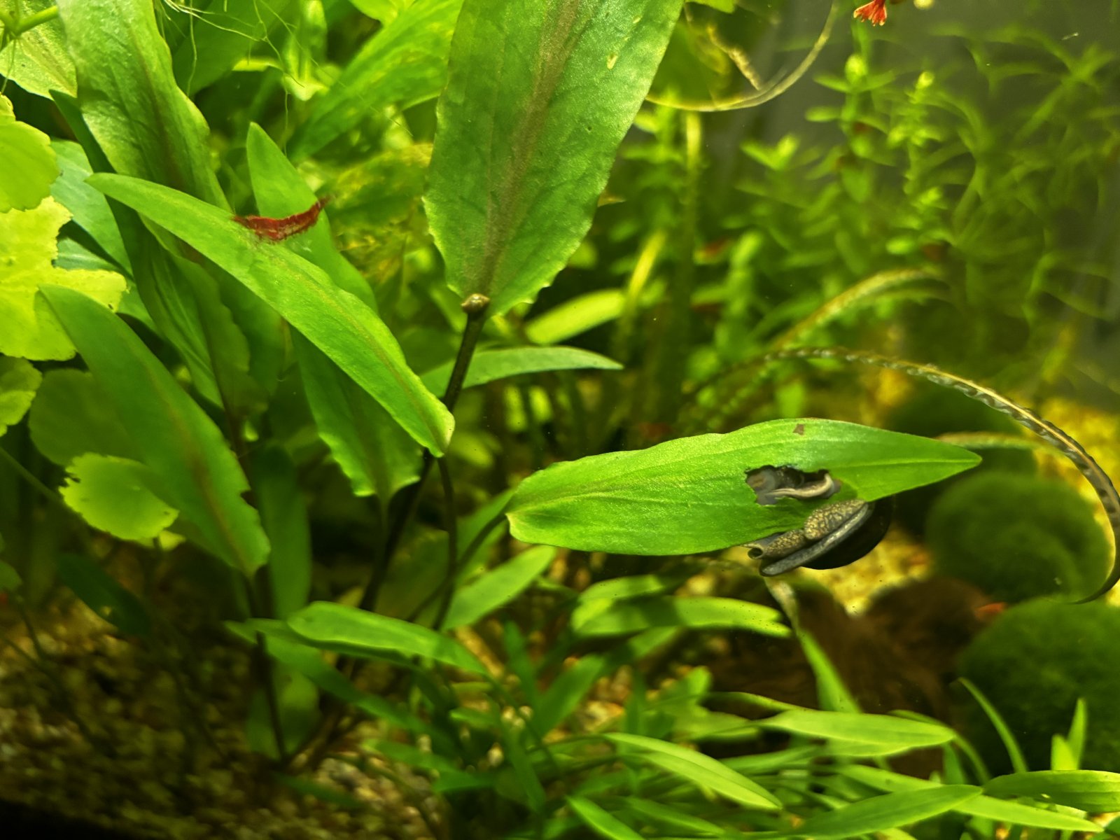 We also had cana apple snails, P. canaliculata. These grew to the size of a tennis ball and did eat plants.