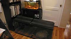First photo, is a full tank shot. You can see a 10g behind it, so it kind of gives you a size reference. (sorry for the small pictures)