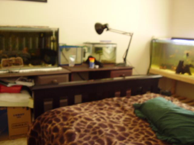 yes love my bed spread it's great isn't it that shot shows off my four tanks...and the very little space I can move in my room Lol