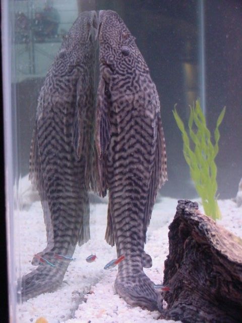 My pleco actually was my inspiration for getting a larger tank (40G difference from the old one). Being the 13 inches that he is, a 35G was a tiny bit cramped.