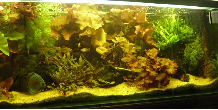 Nice tank....wht fish do you have besides discus (thats the only one I noticed). 8ft? what are its other dimensions? Are the water changes a pain? Cheers Chooklet
