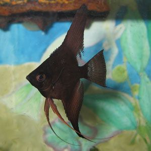 Hey! I'm pretty new here. I'm from Iceland. I just wanted to put up a pic of my angelfish here. He's a black angelfish, and I think he looks very pretty, he is not very big, but I have owned him for about 6 months now.
