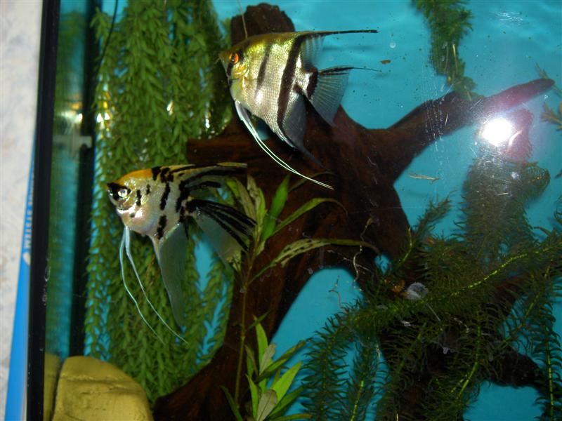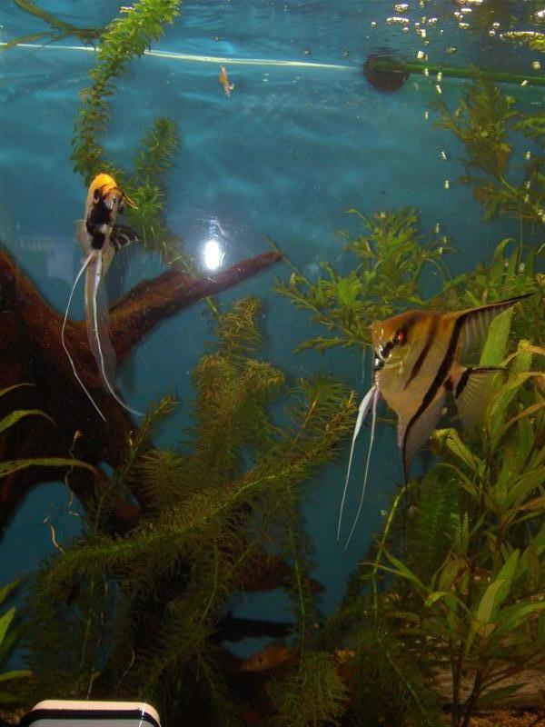 Hi all, just taken sum pix of my angels, who are now in the vision 260 tank, which is bow fronted, they love it, but still havent managed to get the hang of breeding, they lay the eggs, protect and guard them with their lives, but then 4get abt them, and let them disappear. all cus the daddys feelers get in the way of his willy, n he neva fertilses the eggs, just his feelers, bless him!