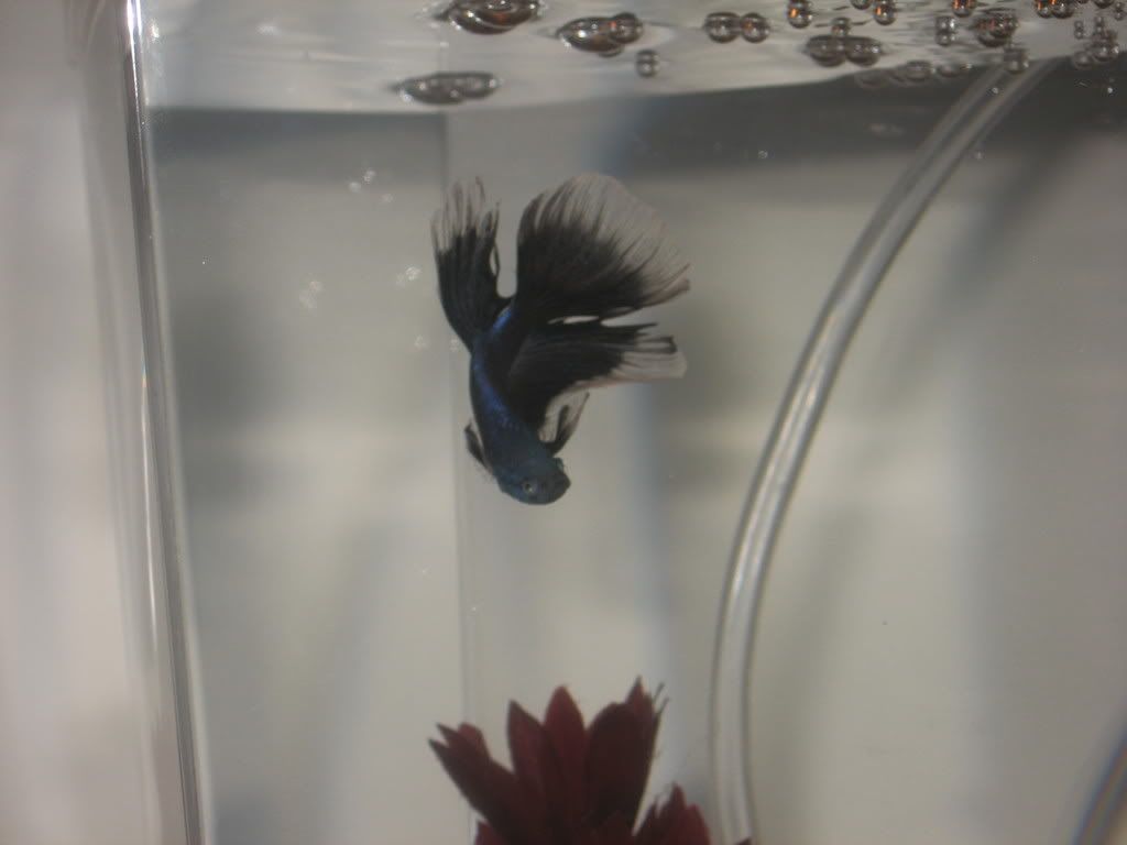 Gotta love Blue bettas ... hey whats that red plant made of... it looks soft from the pics... could be wrong though...