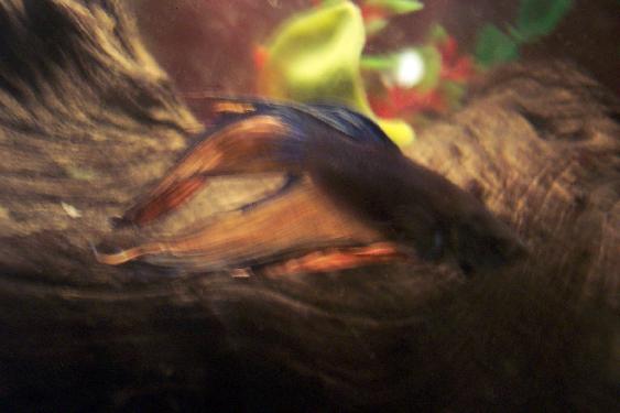 I have more pictures coming of them later tonight, but here is a clear-ish but still terrible picture of my blue and gold combtail. He is such a pretty fish and of course I get terrible shots of him.