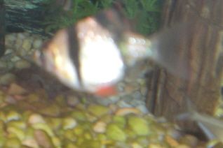 Hey guys this is a pic of my largest Tiger Barb. I am almost positive this fish is a female, it has no red on its nose or fins like my two males. There are two fish this size and a third female that is relativley smaller. So, my question is is this fish carrying eggs?